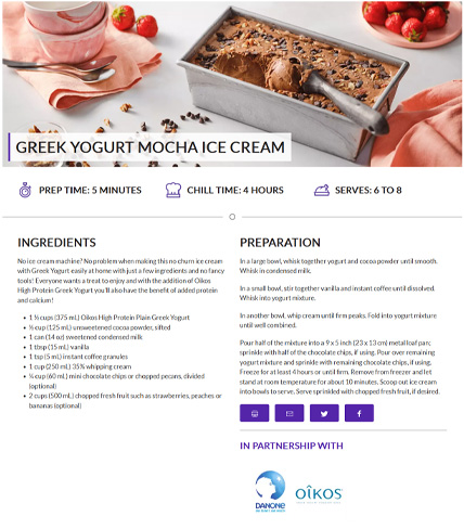 In this recipes example the entire recipe is stored as a set of fields that load into a full page template. This allows for a consistent design across 100’s of recipes. A recipe can be filled out and go live within minutes.